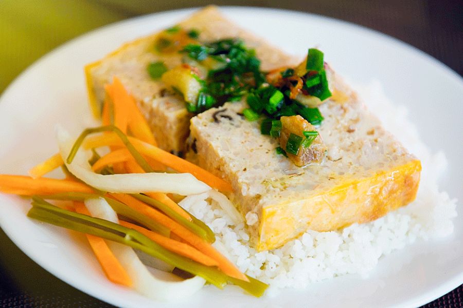 Notably, a layer of egg yolk is spread over the surface of the paste, not only enhancing its appearance but also adding richness, aroma, and tenderness. Preparing good pork and shrimp paste requires great skill.
