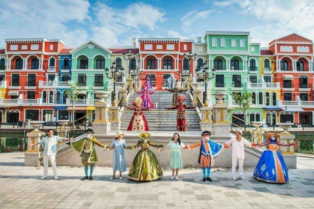 Mega Grand World Hanoi is divided into two main areas: The Venice (Western Market by the river) and K-Town (Eastern Street on the sea). The Venice area features European architecture with colorful riverside houses and Italian-style Gondola boats.